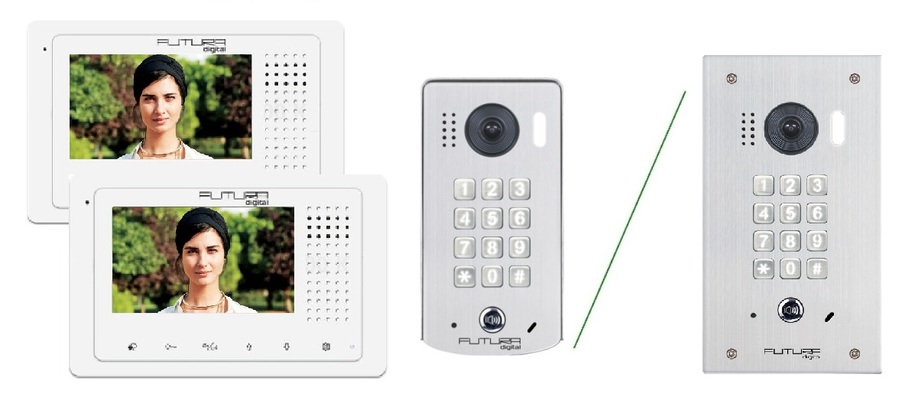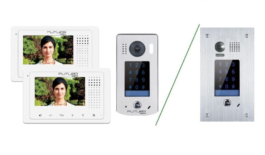Brutt r: 128 905 Ft.Rszletek2 vezetékes digitális (BUS rendszerű) érintőgombos (menüs) video kaputelefon szett, kódzáras kültéri egységgel. Egy lakásban 2 db beltéri egységen fogadhatja a hívásokat.