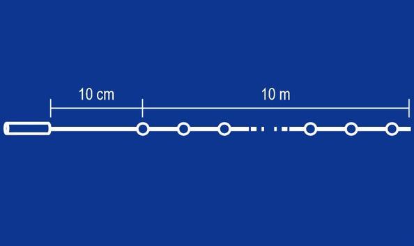A füzér hossza: 10 m + 10 cm a csatlakozókig.