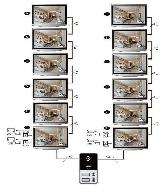 Bővíthető lakásonként + 5 db beltéri egységgel, + 2 db CCTV kamerával.