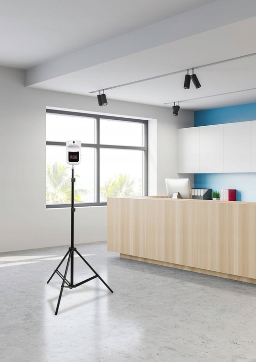Tartozék állvány, akku, tápegység. A koronavírus okozta helyzetben az intézményekben, munkahelyeken kötelező testhőmérséklet mérés érintésmentes, gyors, költséghatékony megoldására, kezelőszemélyzet nélkül!