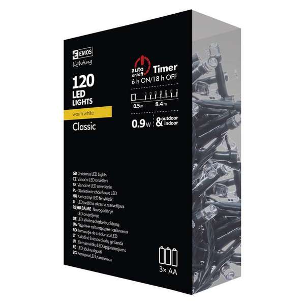 Kültéri LEDes IDŐZÍTŐS fényfüzér, ELEMES, 120-as, meleg fehér, 8,4 m. ZY2056 (D4FW03)