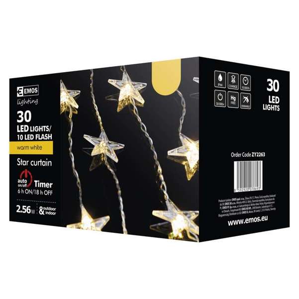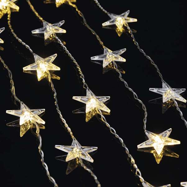 30 db csillagban 6 db meleg fehér LED helyezkedik el. melyből 2 db villog