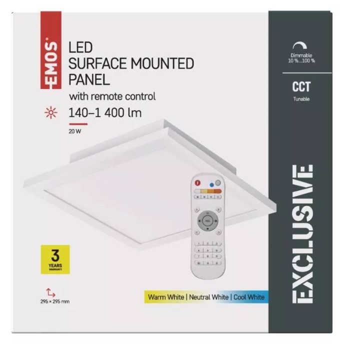 LED-es, fali/mennyezeti lámpa, 20 W, EXCLUSIVE. Állítható fényerõ és színhõmérséklet. ZM5171 fehér. EMOS