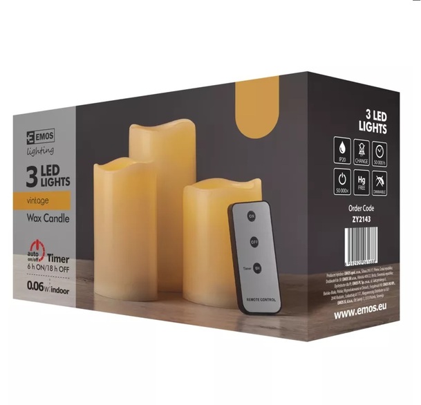 LEDes viaszmécses szett. 3 db 7,5 x 10 / 12.5 / 15 cm, távirányítóval. ZY2143