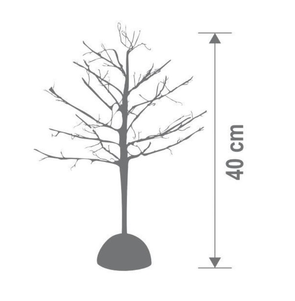 40 db meleg fehér LED-del világító fa dekoráció, mely IP 44 hálózati adapterrel működik.