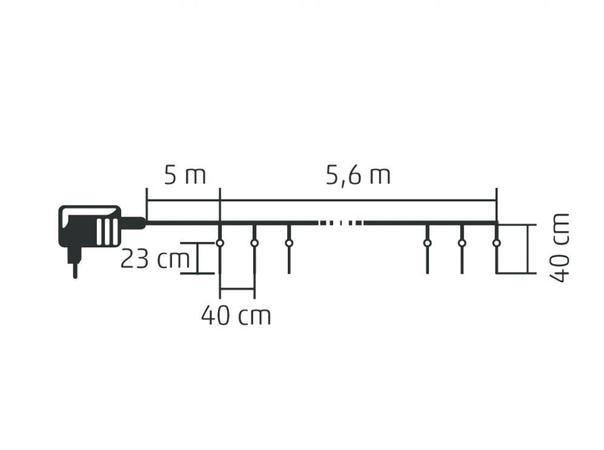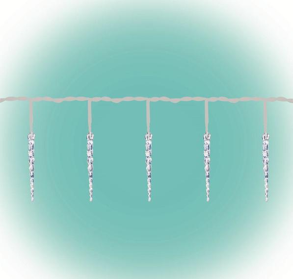 5,6 m hosszú jégcsap füzér, 15 db jégcsappal, amelyekben a 18 db hideg fehér LED jégolvadást imitálva, futófénnyel világít. 5,6 m.